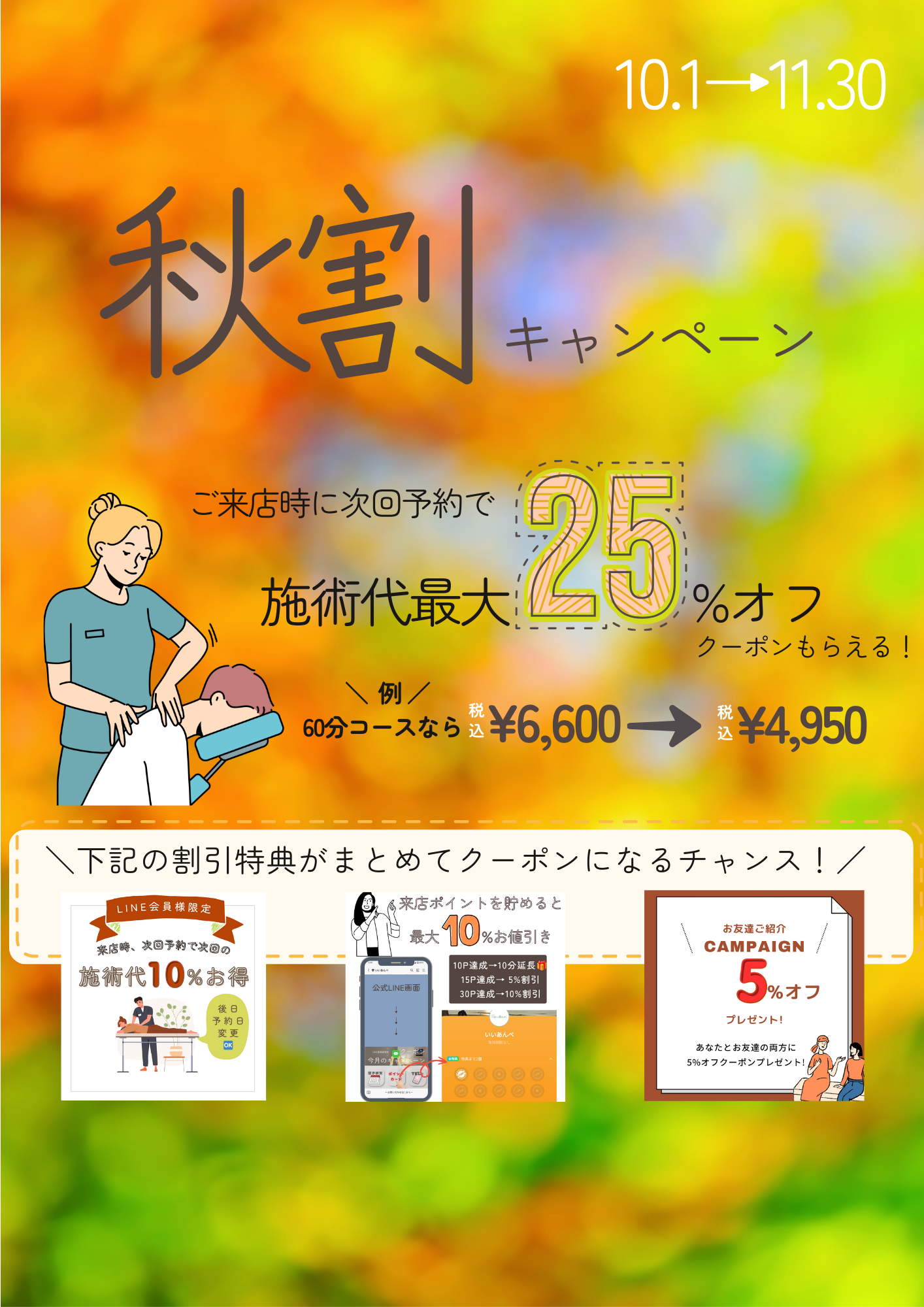 季節の変わり目で疲労を感じやすくなったり、気持ちも落ち込みやすい時期ですが、皆さんいかがお過ごしでしょうか。