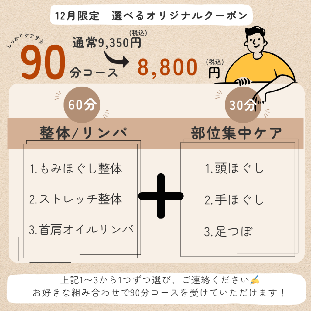 90分コース、通常は9,350円なのですが8,800円で受けることができます✨