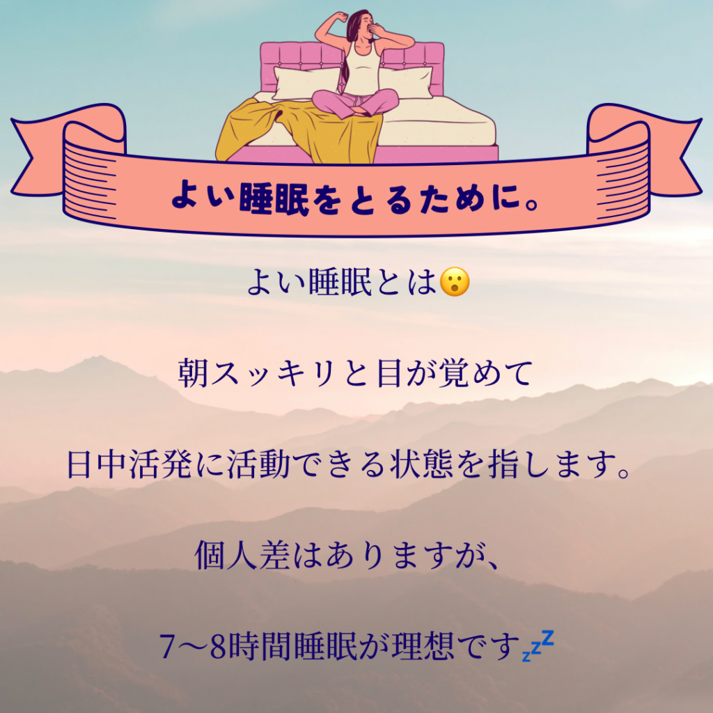 眠りには日中に溜まってしまう脳や体の疲労回復、記憶の整理や定着、免疫力を高める働きがあります。