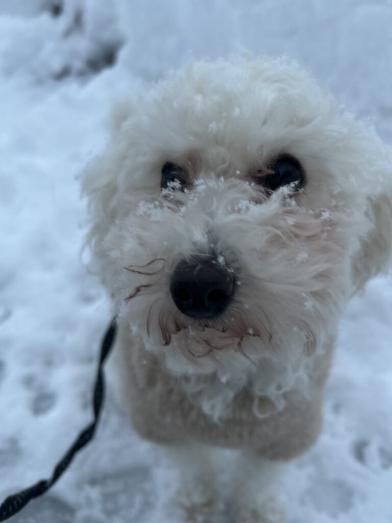 (写真は、お店にはいませんが、我が家のワン🐕‍🦺雪につく犬の足跡に癒されています笑)