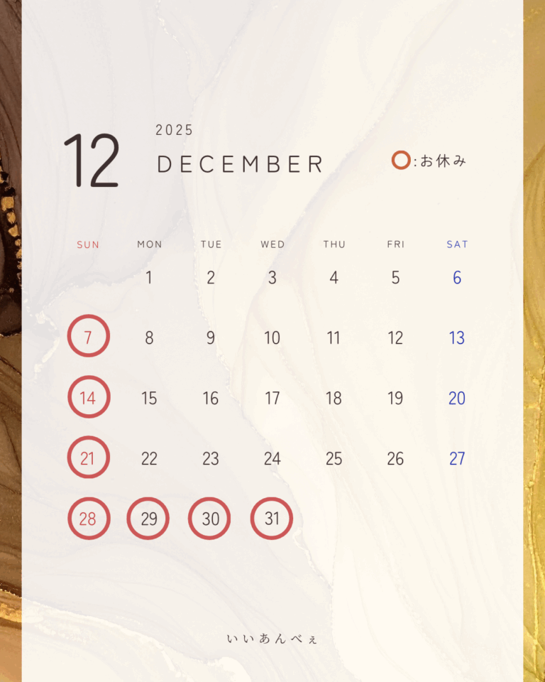 第2・第4(日)が定休日、その他3/25はお休みいただきます☃
